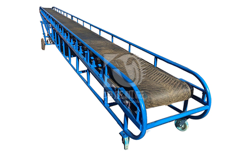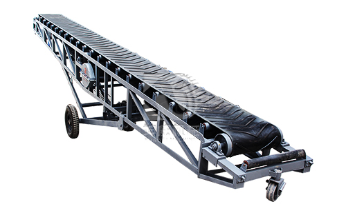 移動式皮帶機由機身大架、行走輪、萬向輪、升降裝置等組成。輸送機配有行走輪,可作整機移動,輸送傾角可以根據實際需要調整,變幅機構可以手動調整,也可以采用電動執行。
